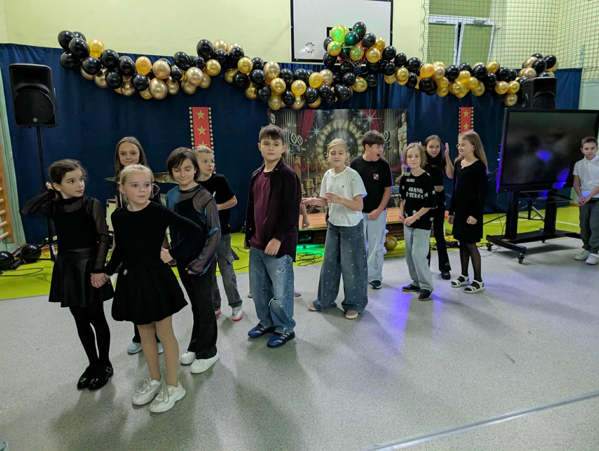 Nasza sala gimnastyczna zamieniła się w przestrzeń rodem z czerwonego dywanu. Migoczące światła, eleganckie dekoracje i wyjątkowa atmosfera sprawiły, że każdy mógł poczuć się jak prawdziwa gwiazda wieczoru.
