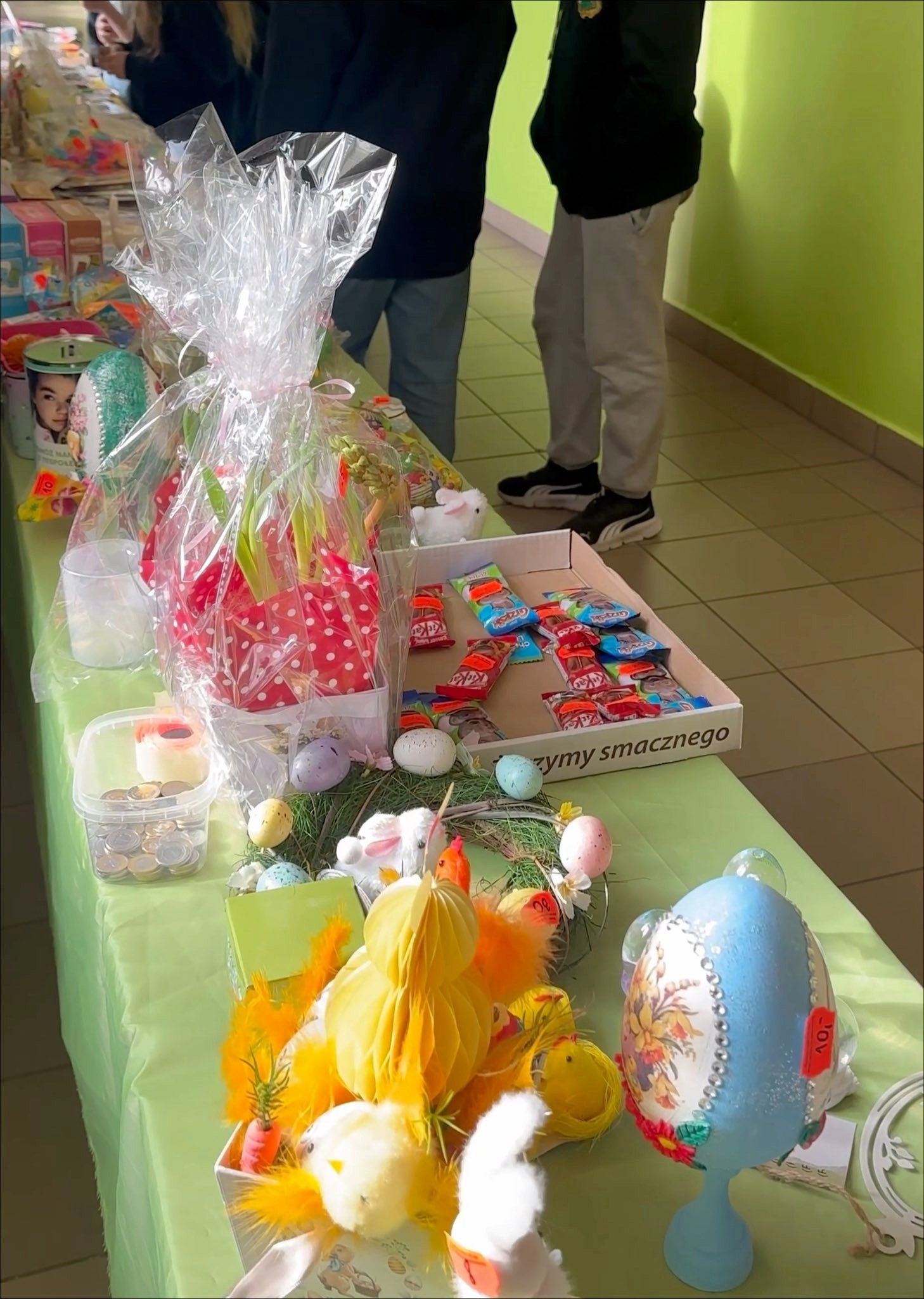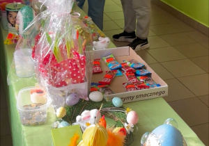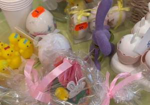 Na kiermaszu dzieci oraz dorośli mogli zakupić ozdoby świąteczne, takie jak pisanki, stroiki czy dekoracje wielkanocne. Dużym zainteresowaniem cieszyły się także różnorodne słodkości – domowe ciasta, babeczki i inne smakołyki, które umilały czas wszystkim uczestnikom.