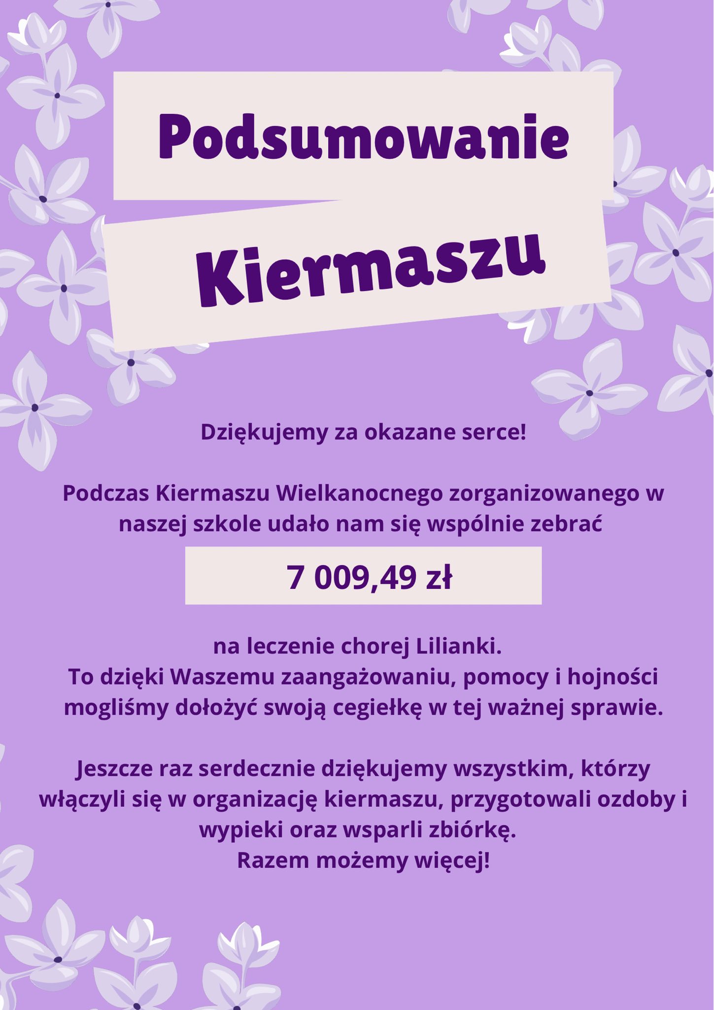 Dziękujemy wszystkim, którzy zaangażowali się w organizację kiermaszu oraz uczniom, nauczycielom i rodzicom, za udział i okazane serce. Razem pokazaliśmy, jak wielką siłę ma wspólne działanie i dobroć serc.