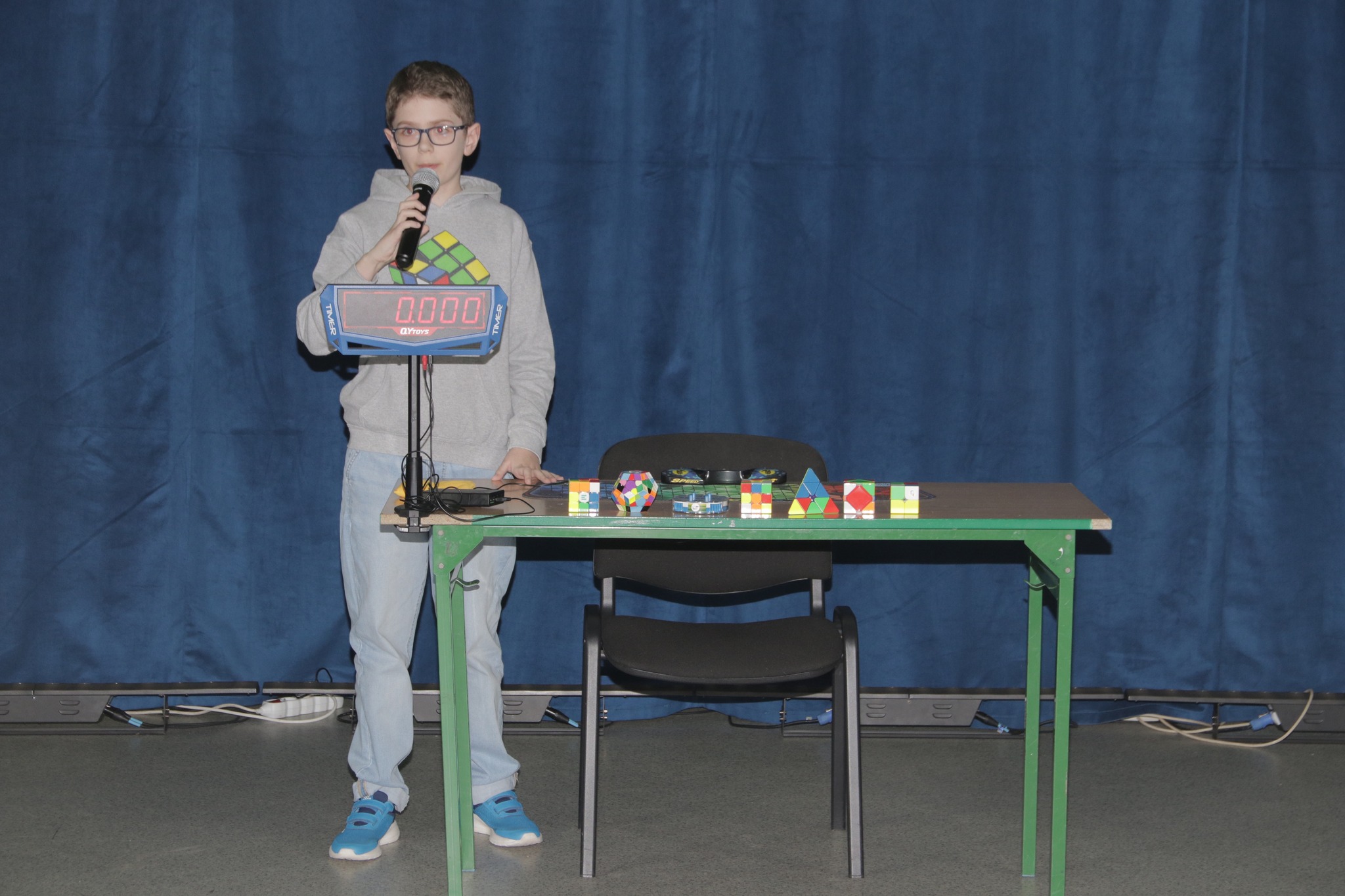 Nagrodę Dyrektora Szkoły Podstawowej nr 1 otrzymał Szymon Gabara z SP 3 w Brzezinach za imponujące umiejętności układania kostki Rubika.