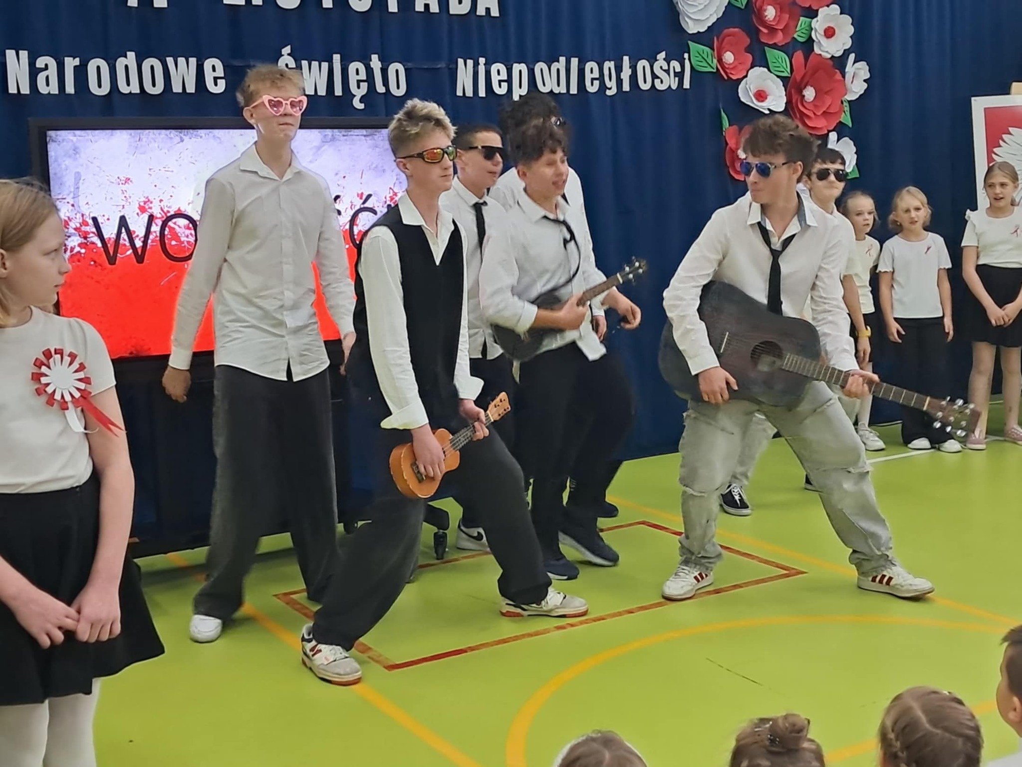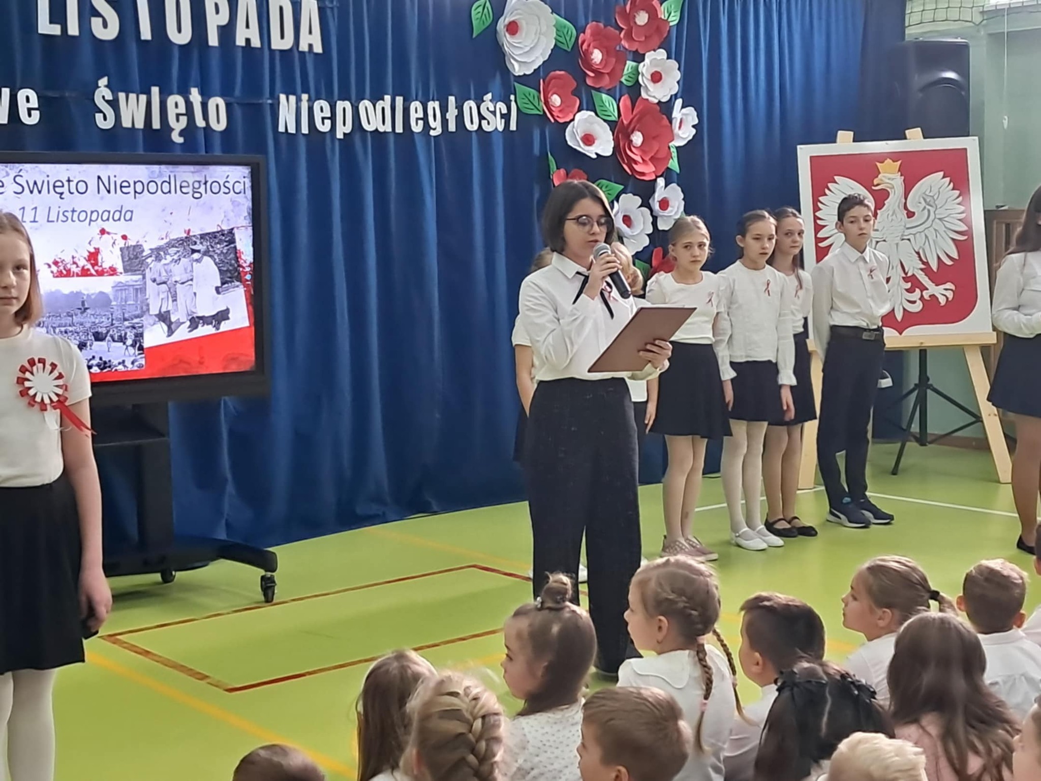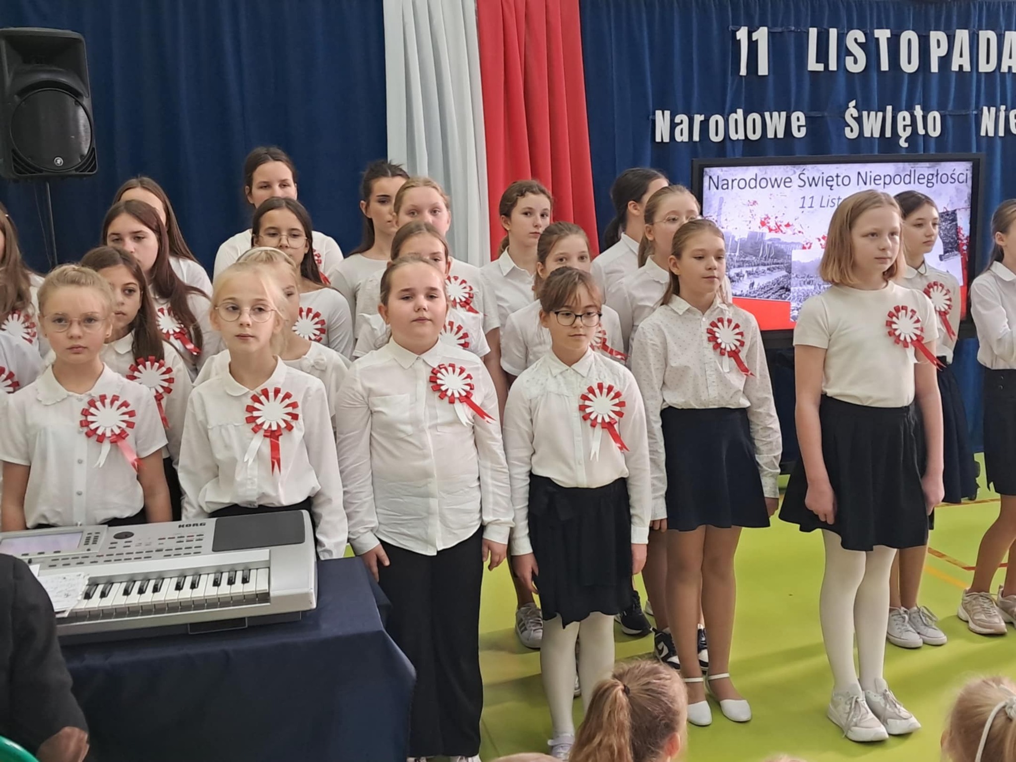 Podczas akademii uczennice starszych klas przedstawiły drogę, którą musieli przejść Polacy od upadku do niepodległości kraju w 1918r., całość opowieści została zobrazowana prezentacją multimedialną. Z kole uczniowie klas czwartych zaprezentowali piękne wiersze patriotyczne przypominające o tęsknocie za wolnością, ale i radości z odzyskania upragnionej wolności. W akademii zaprezentował się również chór szkolny pod opieką Pani Joanny Adamskiej- Siemiątkowskiej, który wykonał wzruszające pieśni towarzyszące naszym przodkom podczas zmagań w walce o niepodległość w tym: „Rotę”, „Marsz Pierwszej Brygady” czy „Biały krzyż”.