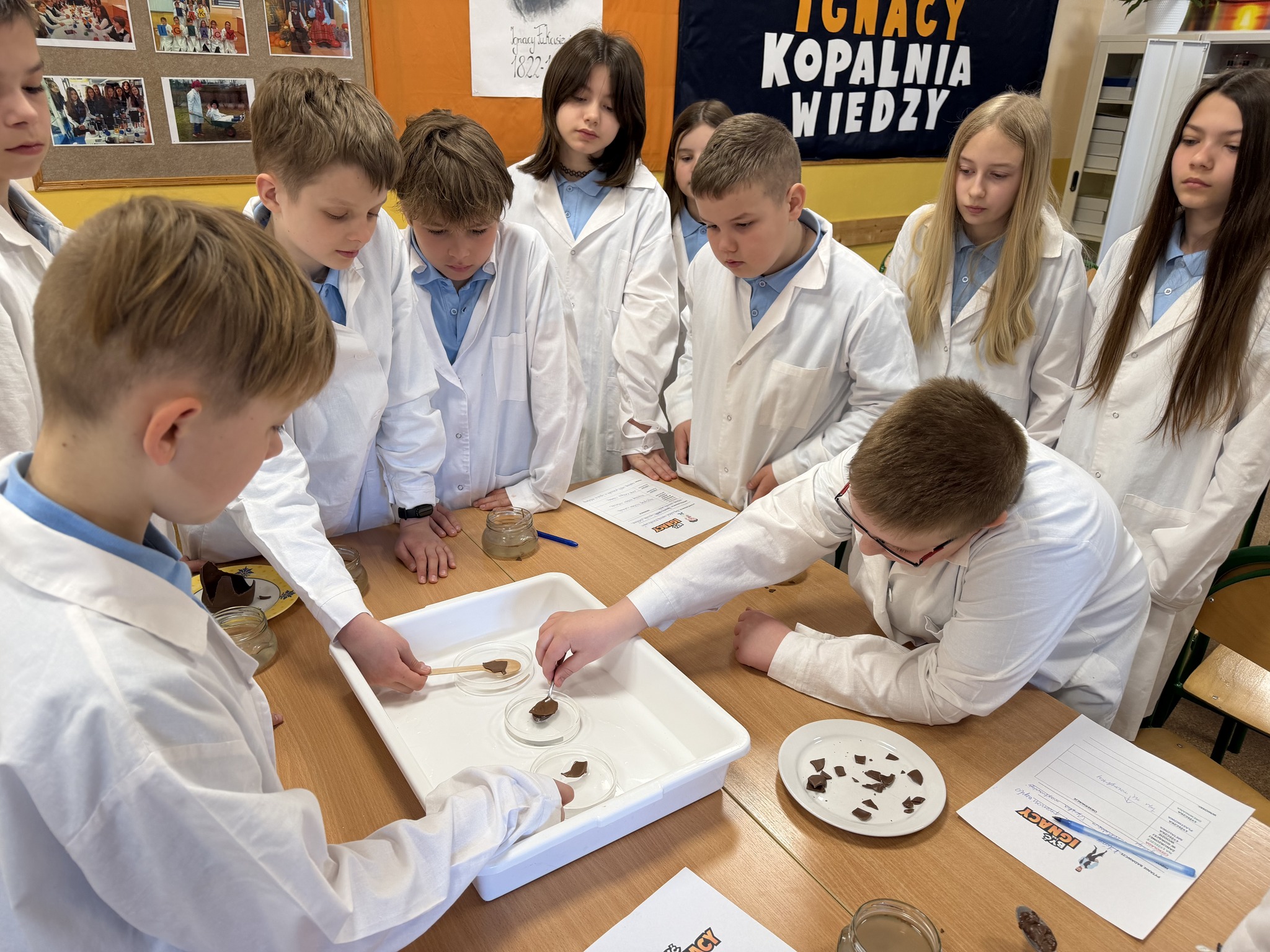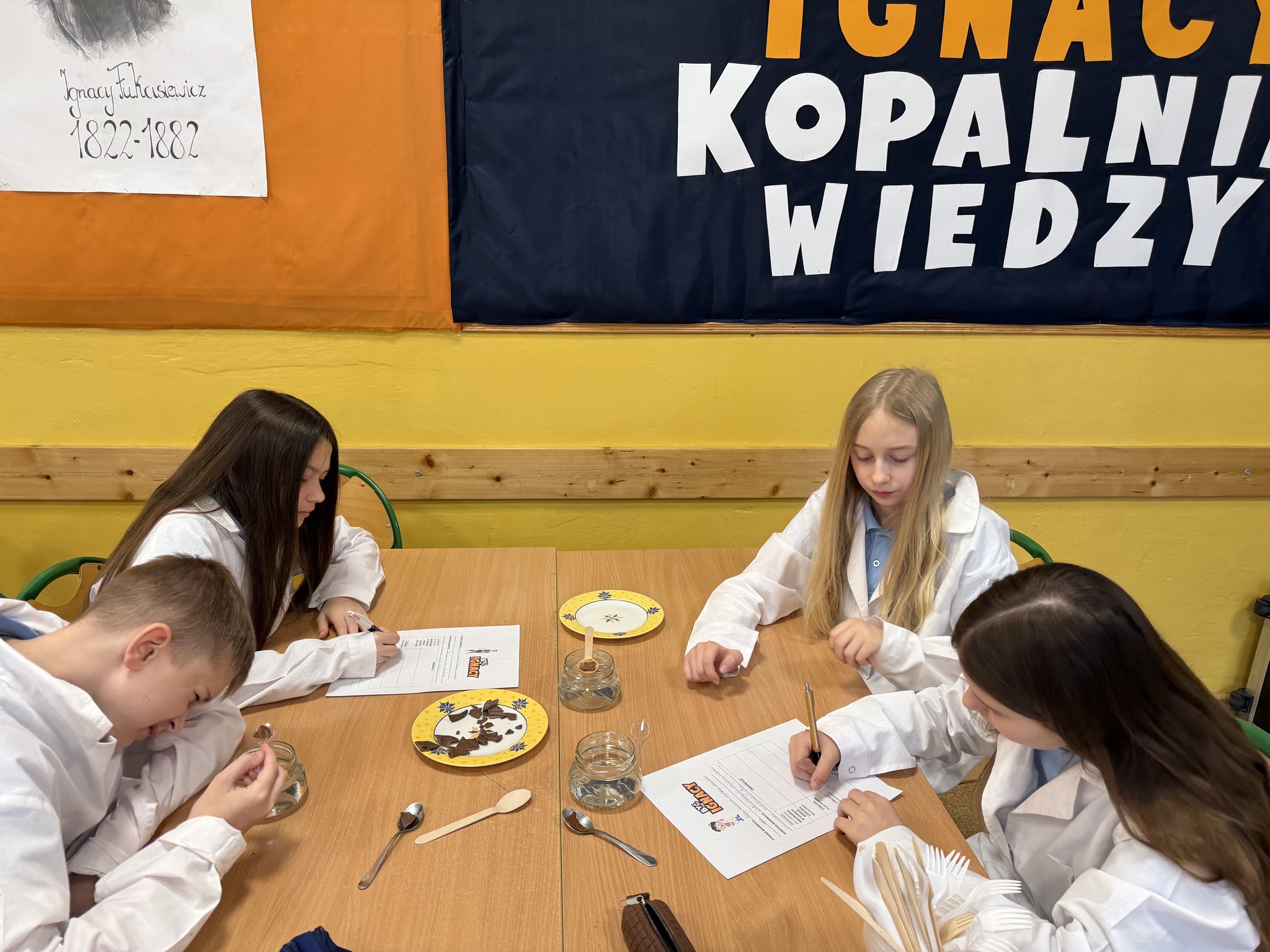 Młodzi Odkrywcy w ramach ósmego etapu programu Być jak Ignacy - program Fundacji ORLEN im. Ignacego Łukasiewicza , który dotyczy surowców przyszłości, przeprowadzili doświadczenie, którego celem było sprawdzenie przewodnictwa cieplnego wybranych materiałów: metalu, drewna i plastiku. W tym celu przeprowadzili eksperyment z wykorzystaniem gorącej wody oraz łyżeczek wykonanych z różnych materiałów. Na każdej z nich umieścili kawałek czekolady