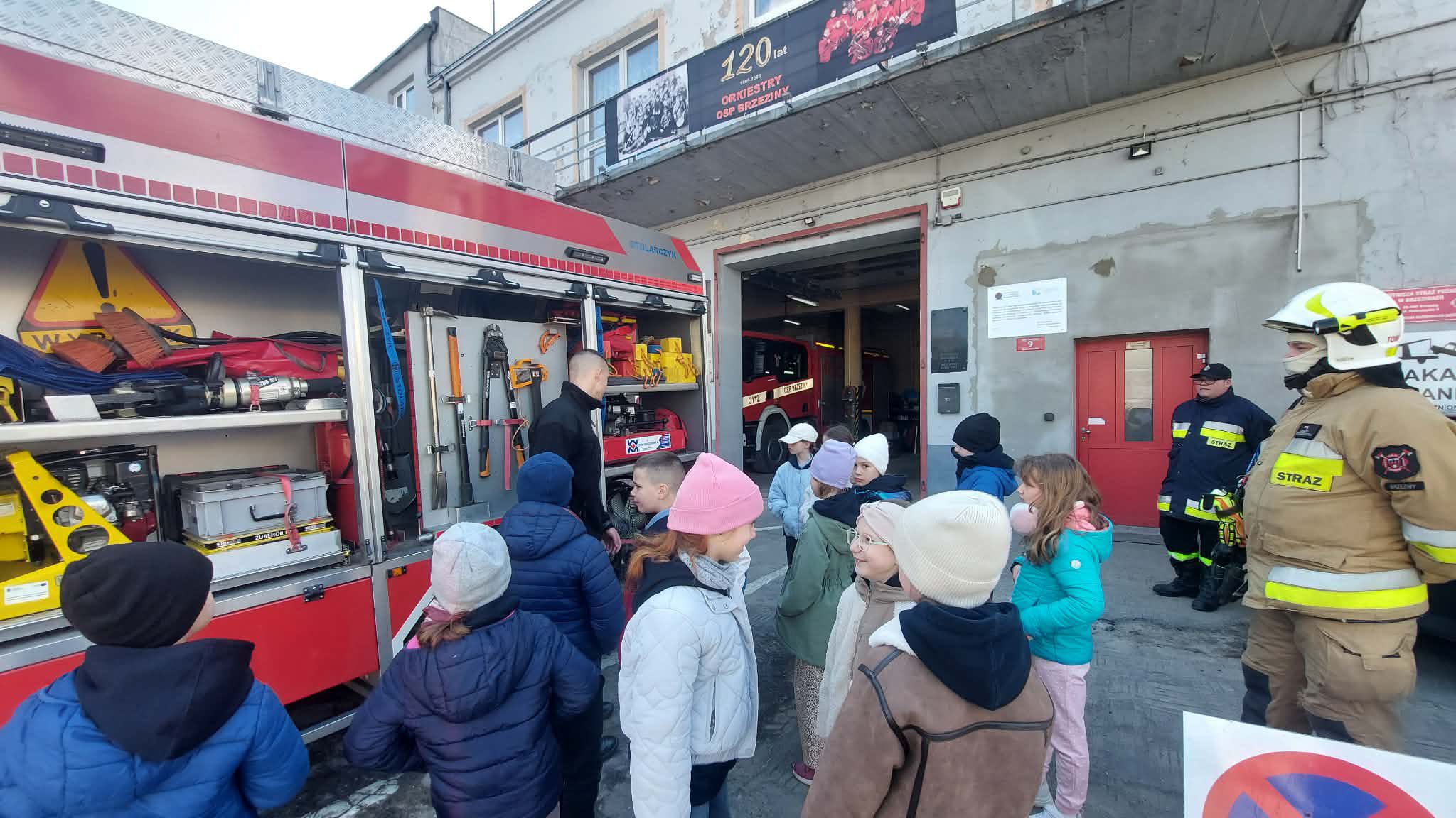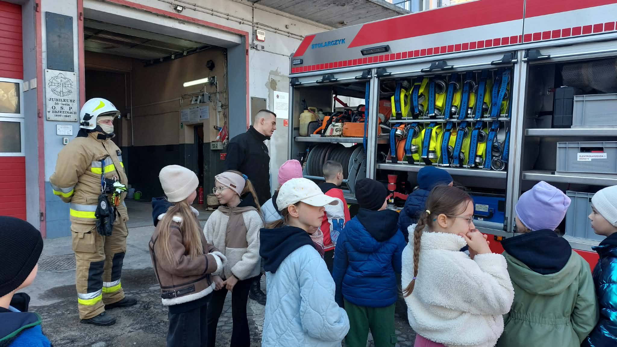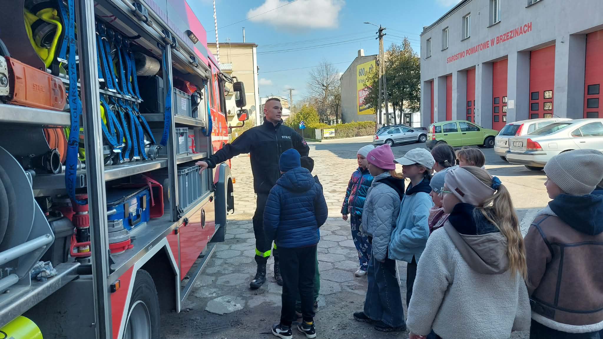 W piątek 10 kwietnia klasa 2b brzezińskiej Jedynki odwiedziła siedzibę Ochotniczej Straży Pożarnej w Brzezinach. Uczniowie wzięli udział w interesującej lekcji dotyczącej pracy strażaka, podczas której dowiedzieli się, na czym polega codzienna służba oraz jakie wyzwania wiążą się z tym odpowiedzialnym zawodem. Dzieci miały również okazję z bliska zapoznać się ze specjalistycznym sprzętem ratowniczym, wozami strażackimi oraz elementami ubioru strażaka, co wzbudziło duże zainteresowanie i wiele pytań.
