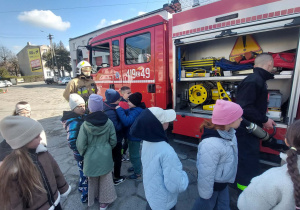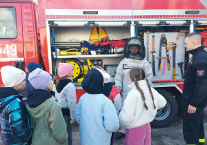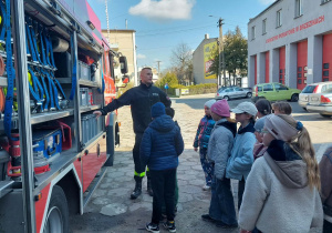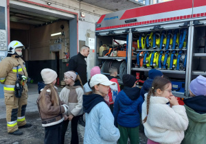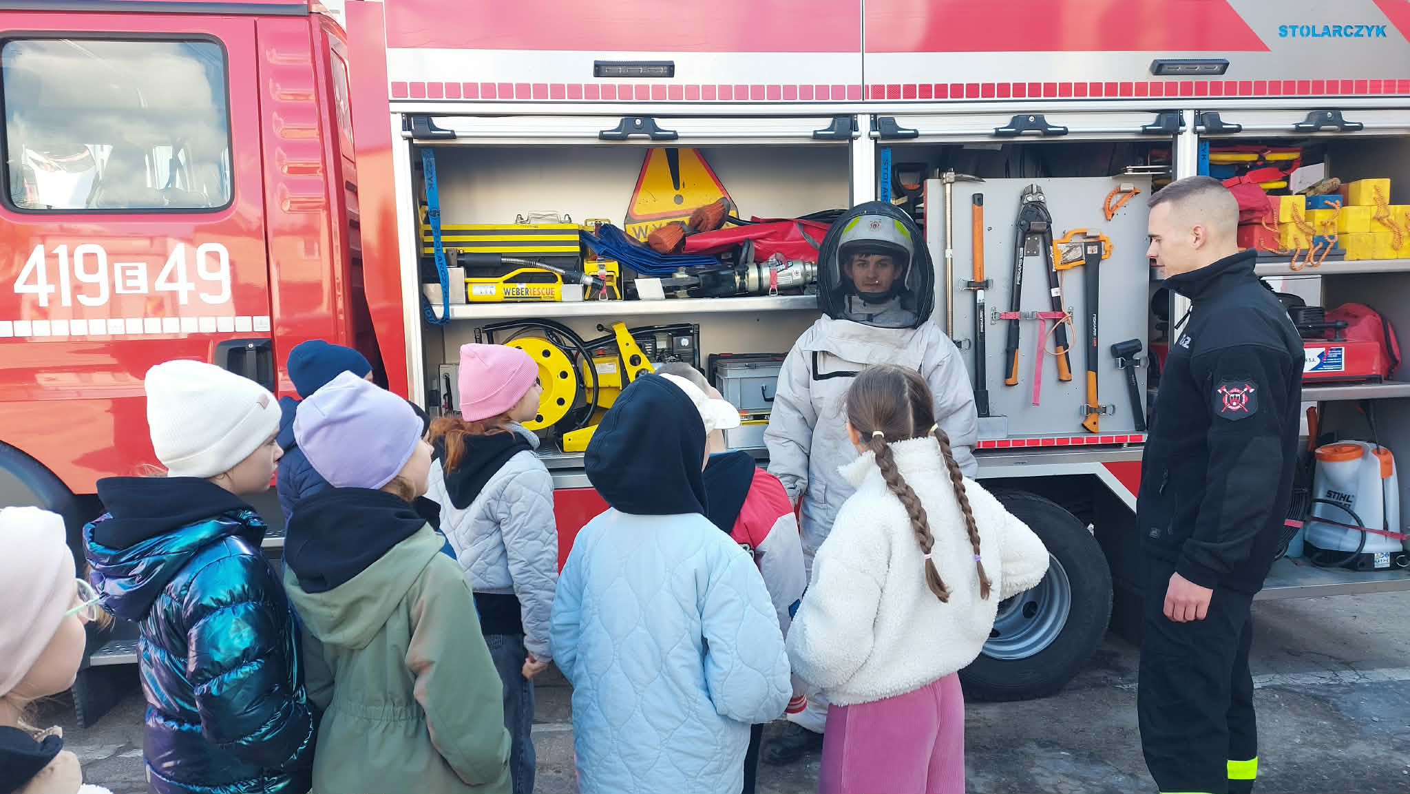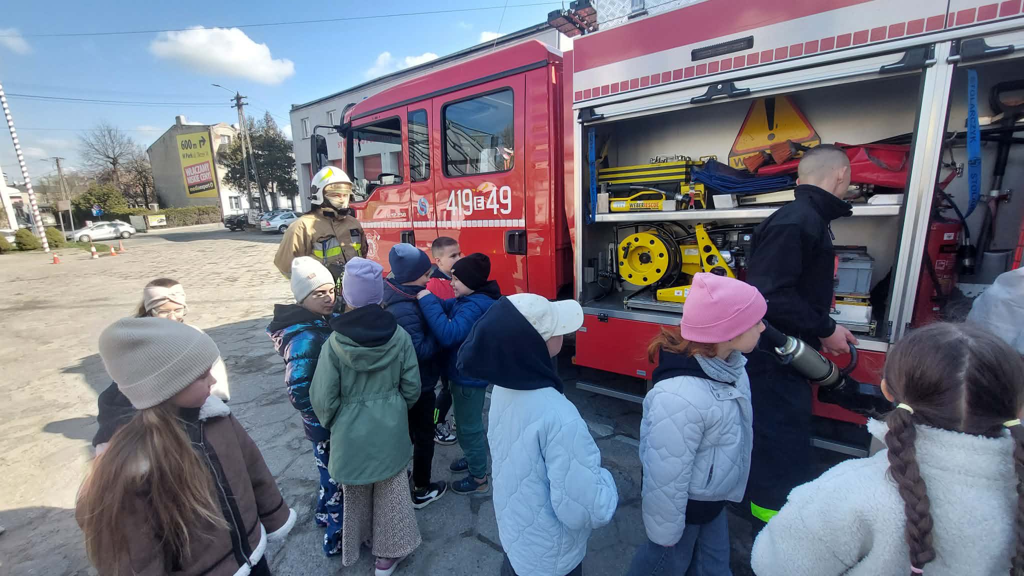 W piątek 10 kwietnia klasa 2b brzezińskiej Jedynki odwiedziła siedzibę Ochotniczej Straży Pożarnej w Brzezinach. Uczniowie wzięli udział w interesującej lekcji dotyczącej pracy strażaka, podczas której dowiedzieli się, na czym polega codzienna służba oraz jakie wyzwania wiążą się z tym odpowiedzialnym zawodem. Dzieci miały również okazję z bliska zapoznać się ze specjalistycznym sprzętem ratowniczym, wozami strażackimi oraz elementami ubioru strażaka, co wzbudziło duże zainteresowanie i wiele pytań.